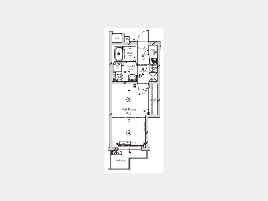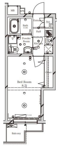 洋室 8.2 畳 1 室 K 1 室 |