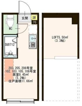 | 専有面積 | 11.66m² | バルコニー面積 | |