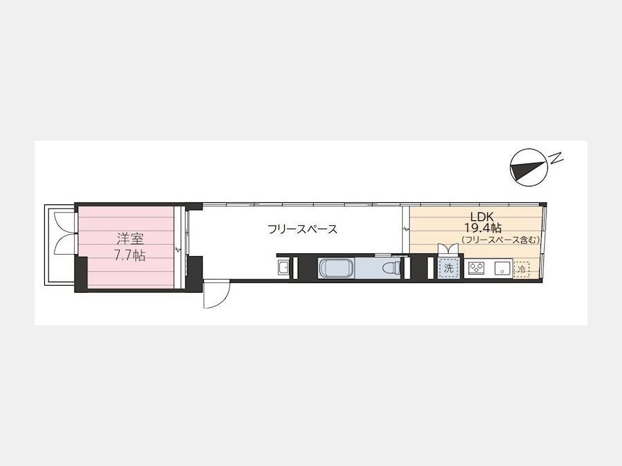 洋室 7.7 畳 1 室 LDK 16.9 畳 1 室 |