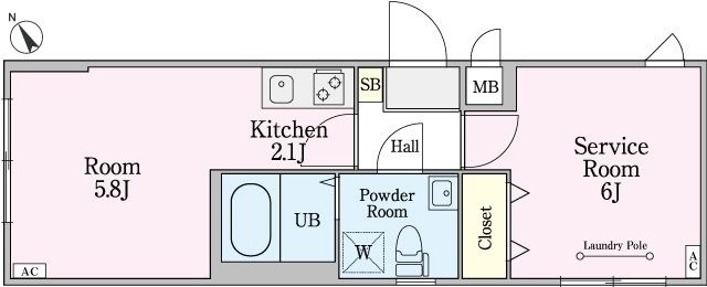 S 6 畳 1 室 洋室 5.8 畳 1 室 |
