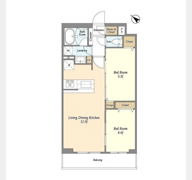 LDK 12.9 畳 洋室 5.3 畳 洋室 4.6 畳 |