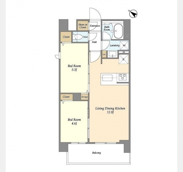LDK 12.9 畳 洋室 5.3 畳 洋室 4.6 畳 |