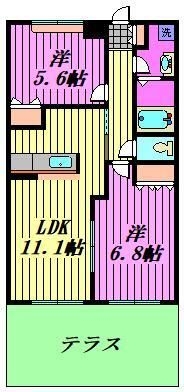 LDK 11.1 畳 洋室 6.8 畳 洋室 5.6 畳 |