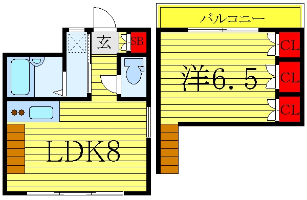 LDK 8 畳 洋室 6.5 畳 |