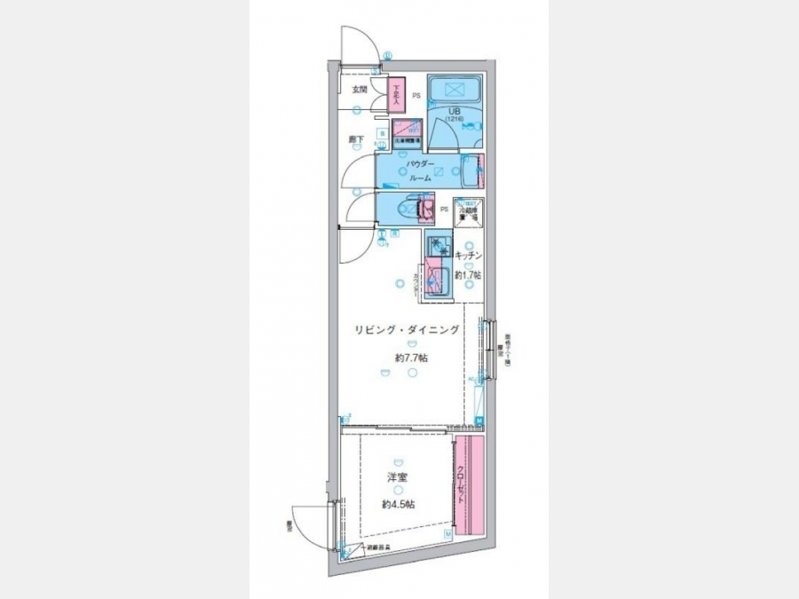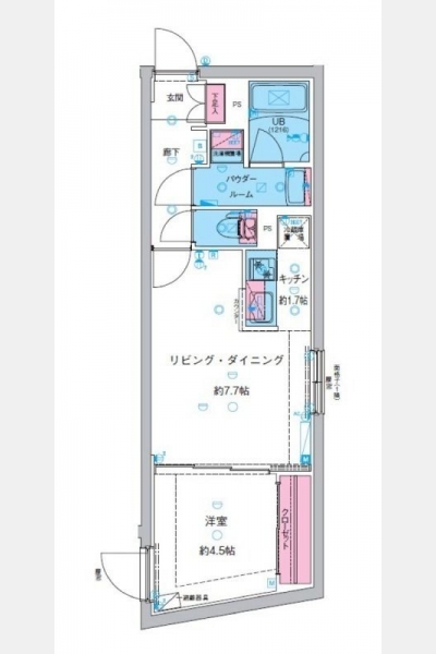 洋室 4.5 畳 1 室 LD 7.7 畳 1 室 |