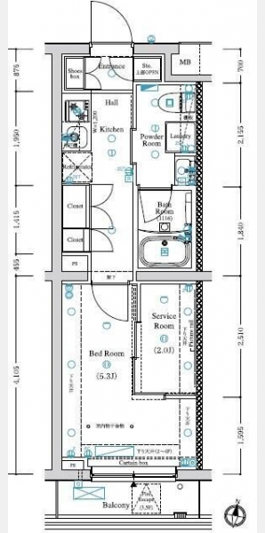 洋室 5.3 畳 S 2 畳 |