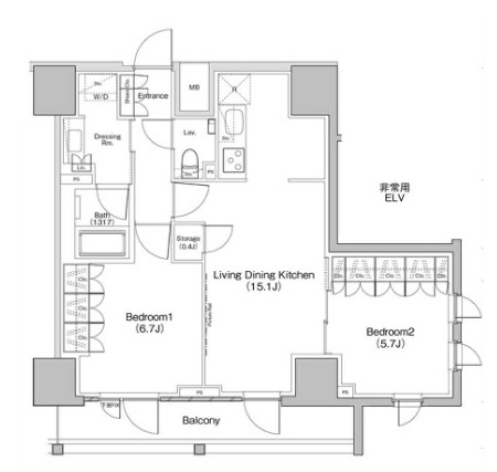 LDK 15.1 畳 6.7 畳 洋室 5.7 畳 |