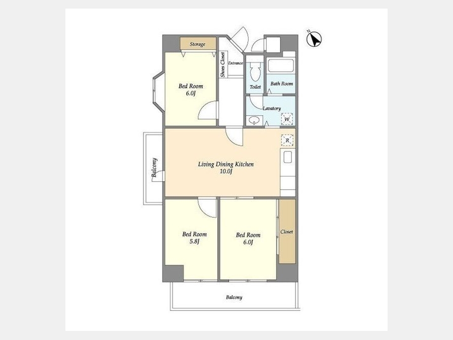 LDK 10 畳 洋室 6 畳 洋室 6 畳 洋室 5.8 畳 |