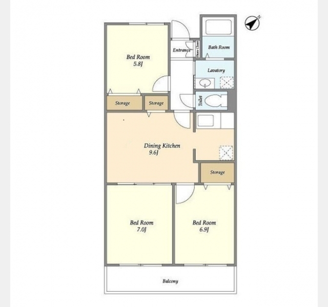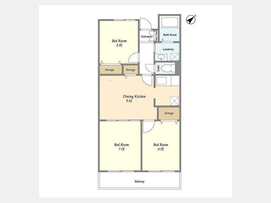 DK 9.6 畳 洋室 5.8 畳 洋室 6.9 畳 洋室 7 畳 |