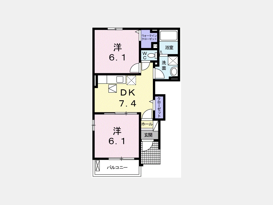 洋室 6.1 畳 洋室 6.1 畳 DK 7.4 畳 |