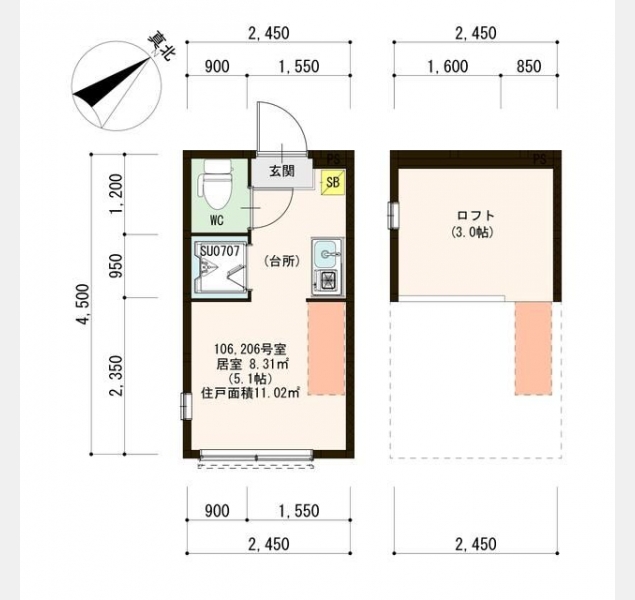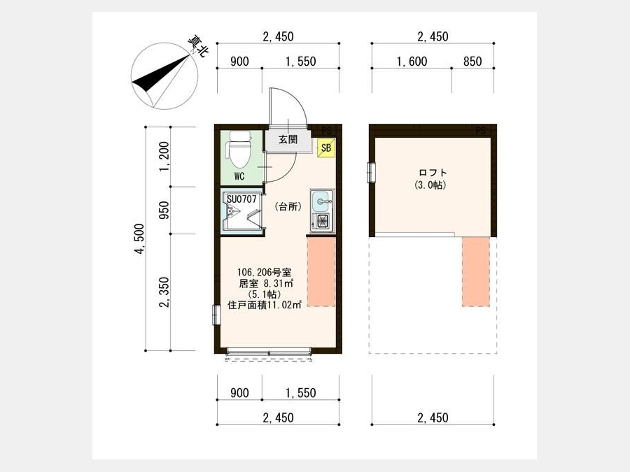 | 専有面積 | 11.02m² | バルコニー面積 | |