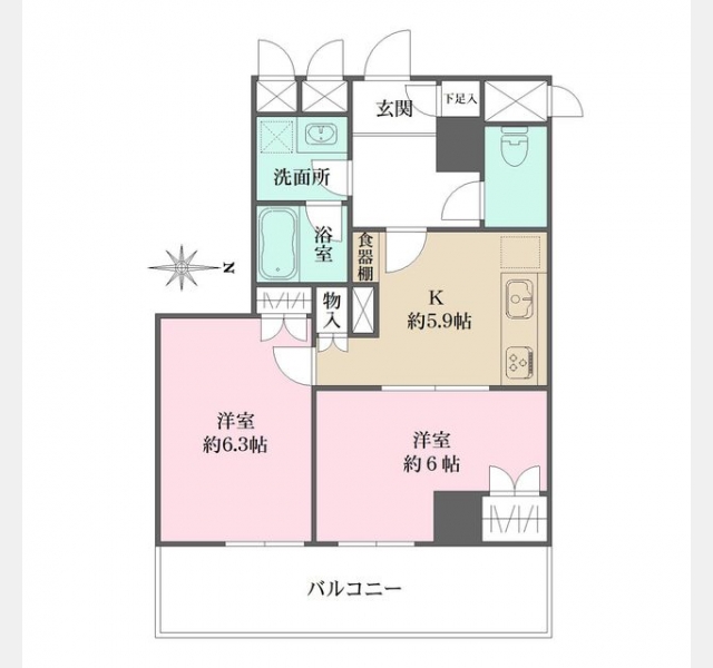 洋室 6.3 畳 洋室 6 畳 K 5.9 畳 |