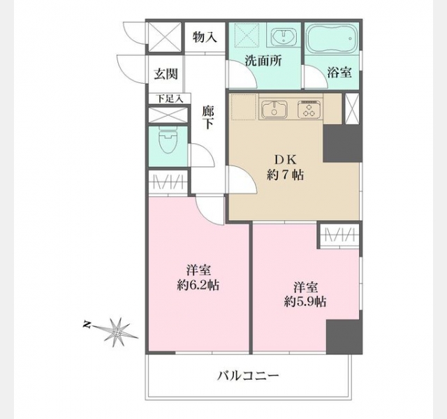 洋室 6.2 畳 洋室 5.9 畳 DK 7 畳 |