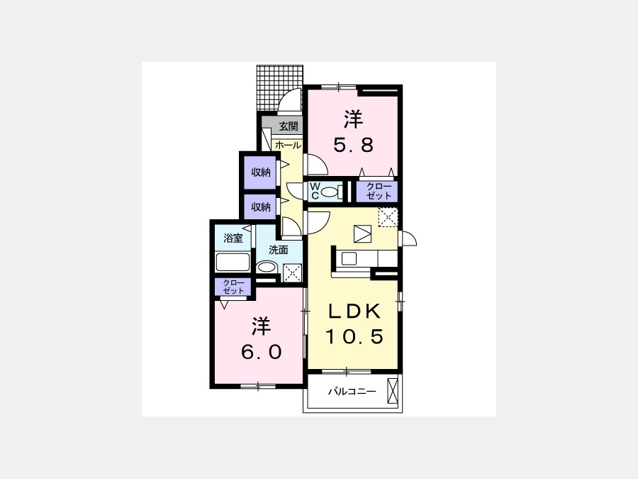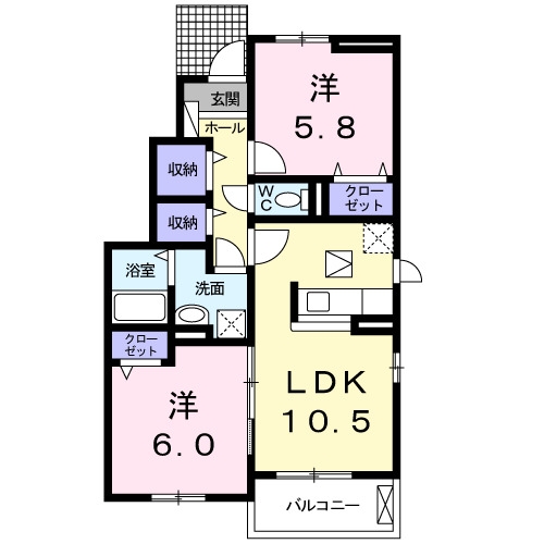 洋室 5.8 畳 洋室 6 畳 LDK 10.5 畳 |
