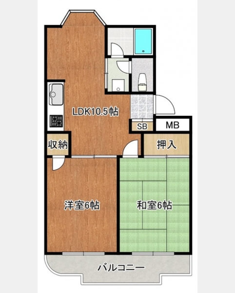 LDK 10.5 畳 1 室 洋室 6 畳 1 室 和室 6 畳 1 室 |