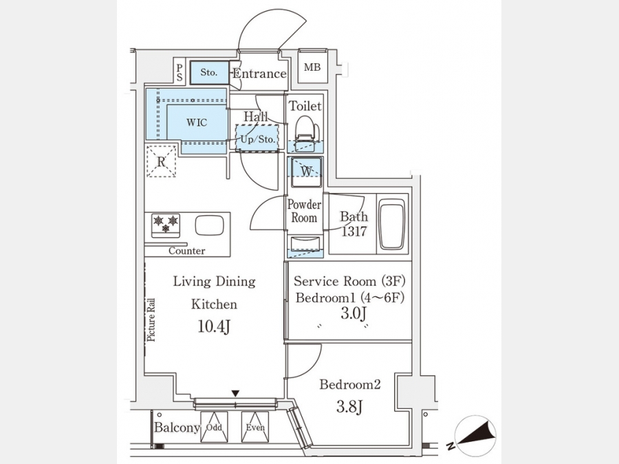 LDK 10.4 畳 洋室 3.8 畳 S 3 畳 |