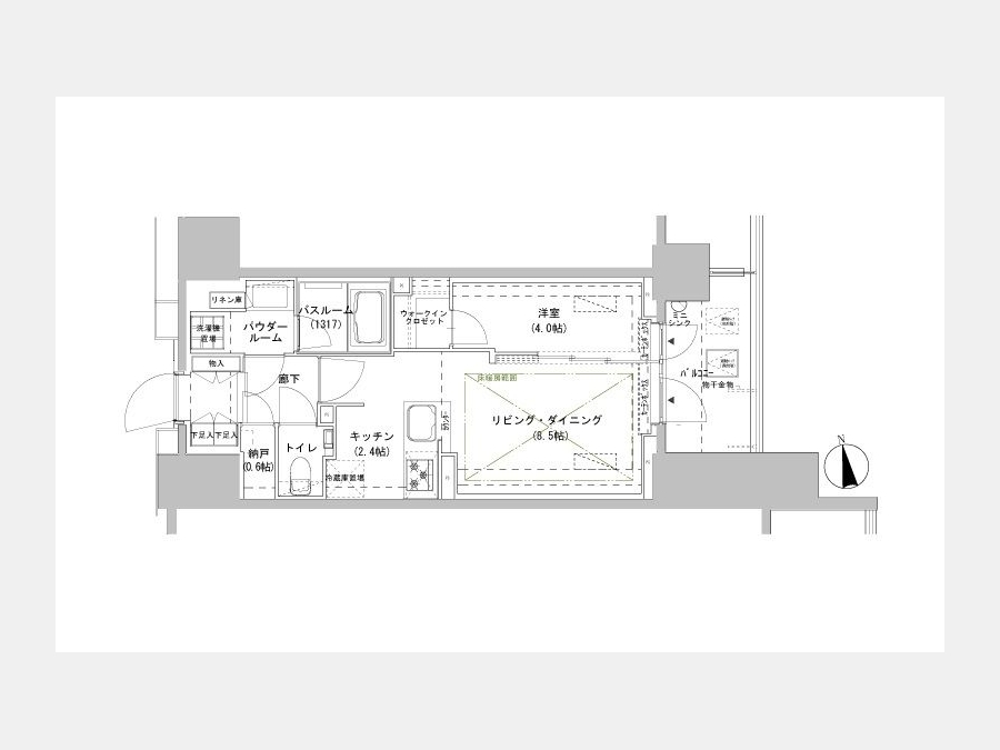 | 敷金/礼金 | 1ヶ月 / 1ヶ月 | 専有面積 | 40.01m² |