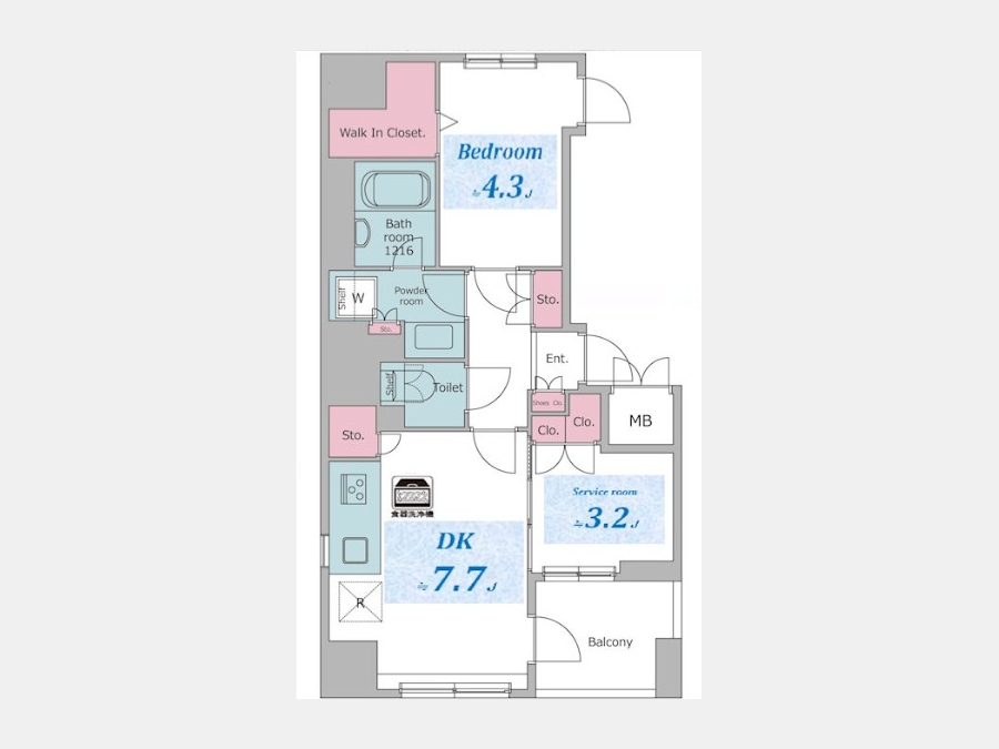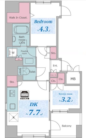 DK 7.7 畳 洋室 4.3 畳 S 3.2 畳 |
