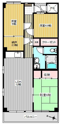 和室 6 畳 洋室 5 畳 洋室 4.5 畳 LDK 12 畳 S 2.5 畳 |