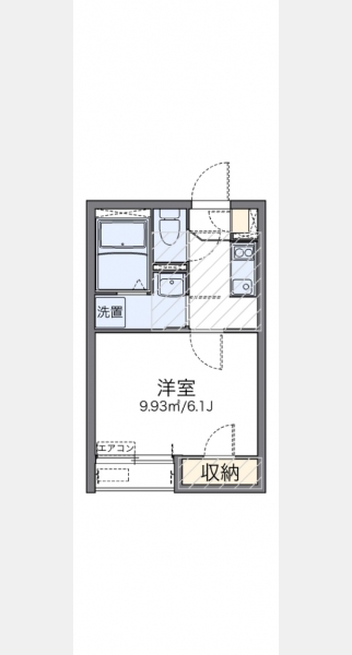 | 設備・条件 | 1階、バス・トイレ別、温水洗浄便座、浴室乾燥機、室内洗濯機置き場、フローリング、ロフト付き、エアコン、バルコニー、敷金なし、保証人不要、インターネット対応、TVドアホン、駐輪場 | ||