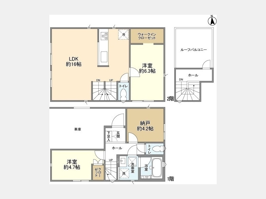 洋室 4.7 畳 1 階 1 室 S 4.2 畳 1 階 1 室 LDK 16 畳 2 階 1 室 洋室 6.3 畳 2 階 1 室 |