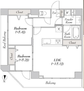 LDK 15.1 畳 洋室 5.4 畳 洋室 5.2 畳 |