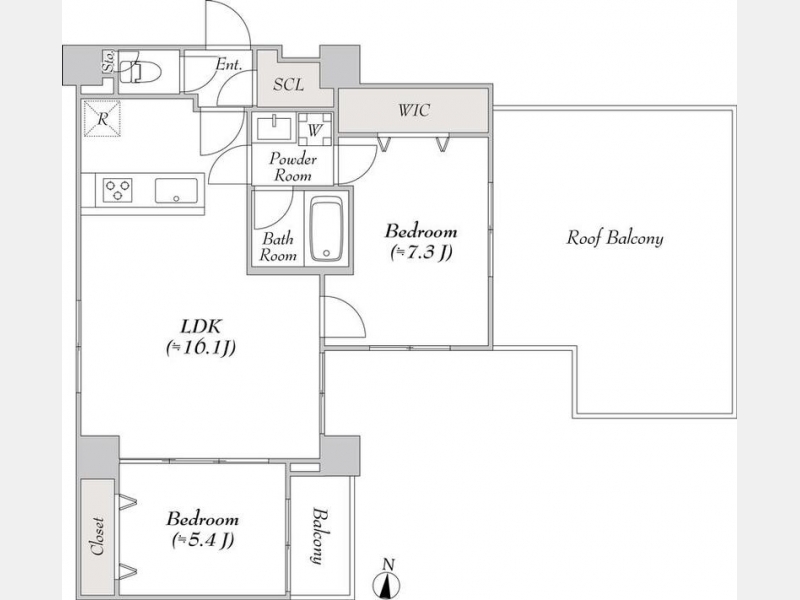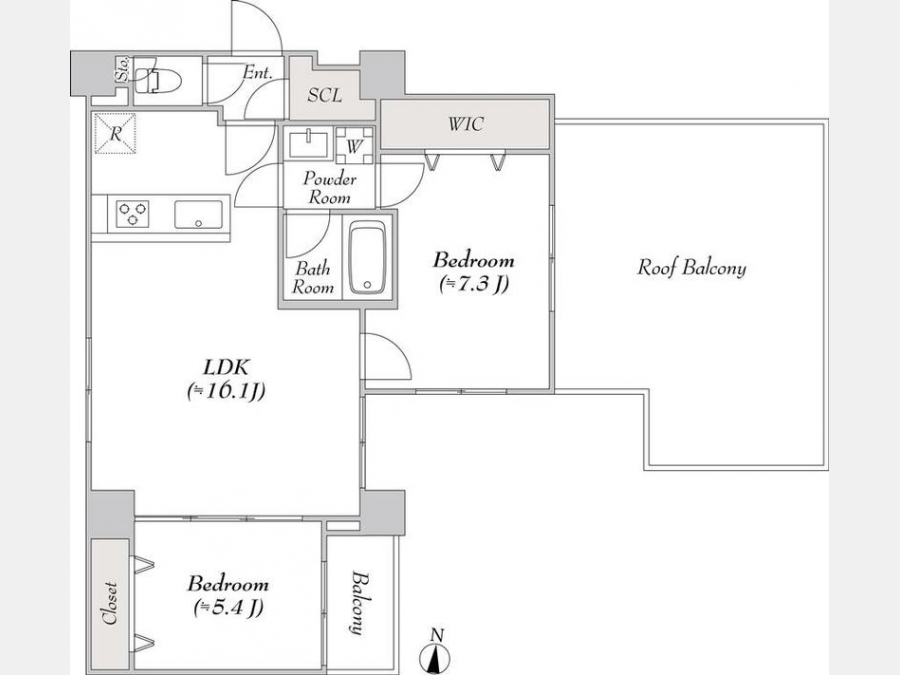 洋室 7.3 畳 1 室 洋室 5.4 畳 1 室 LDK 16.1 畳 1 室 |