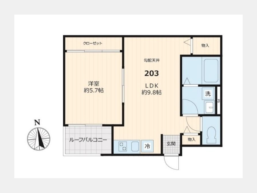 洋室 5.7 畳 1 室 LDK 9.8 畳 1 室 |
