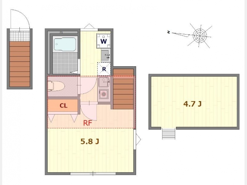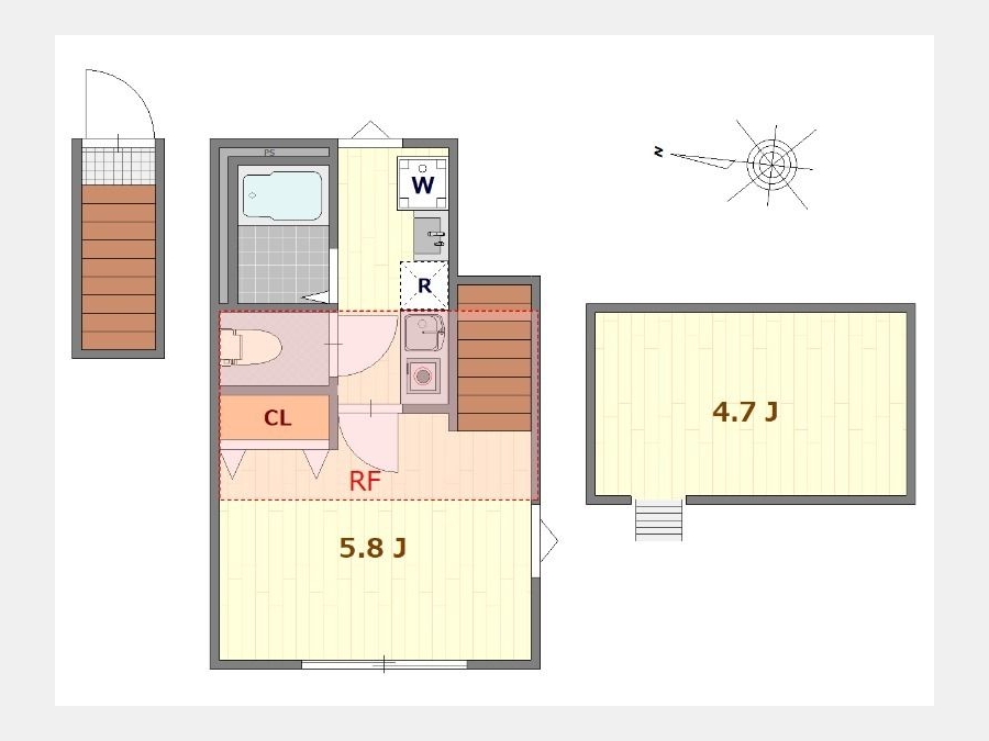 洋室 5.8 畳 1 室 K 1 室 |