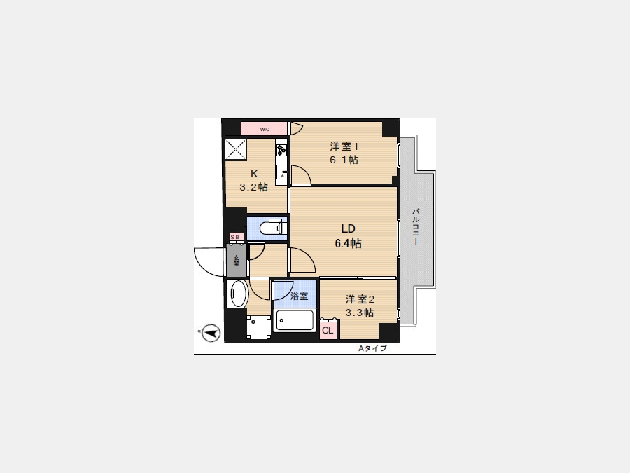 LDK 9.6 畳 洋室 3.3 畳 洋室 6.1 畳 |