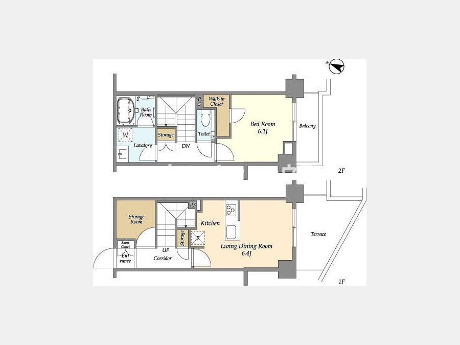 | 設備・条件 | 1階、システムキッチン、バス・トイレ別、温水洗浄便座、浴室乾燥機、追い焚き、室内洗濯機置き場、メゾネット、エアコン、ウォークインクローゼット、バルコニー、礼金なし、敷金なし、保証人不要、インターネット対応、オートロック、TVドアホン、防犯カメラ、宅配ボックス、バイク置き場、駐輪場、エレベータ | ||