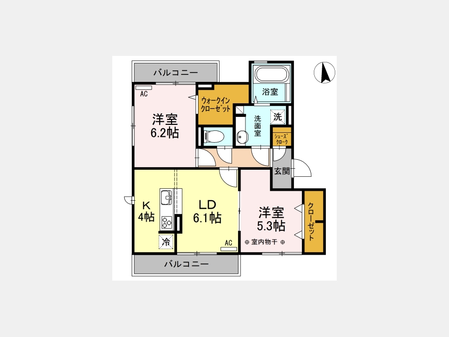 洋室 6.2 畳 洋室 5.3 畳 LDK 10.1 畳 |