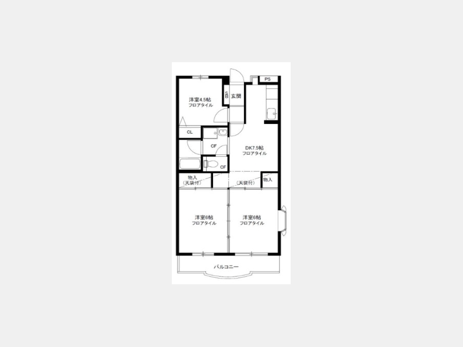 洋室 6 畳 洋室 6 畳 洋室 4.5 畳 DK 7.5 畳 1 室 |