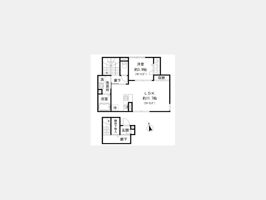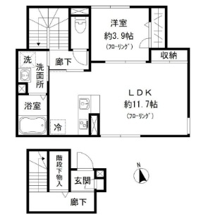 洋室 3.9 畳 1 室 LDK 11.7 畳 1 室 |