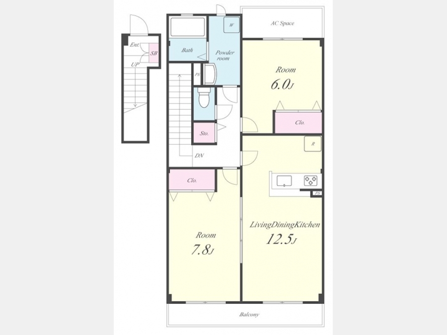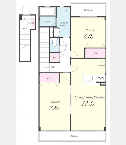洋室 6 畳 洋室 7.8 畳 LDK 12.5 畳 |