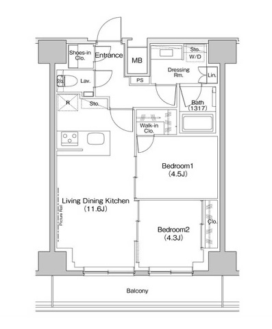 | 間取り | 2LDK | 階建 | 14階/14階建 |