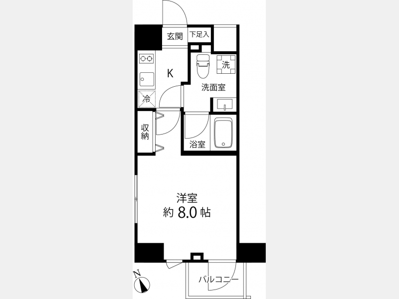 洋室 8 畳 1 室 K 1 室 |