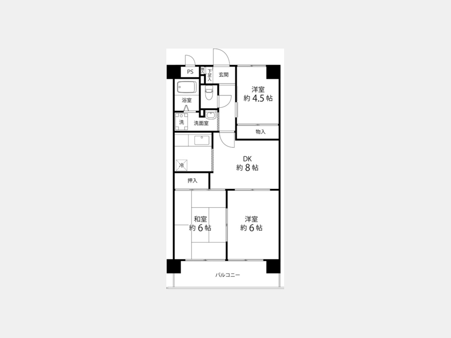 DK 8 畳 和室 6 畳 洋室 6 畳 洋室 4.5 畳 |