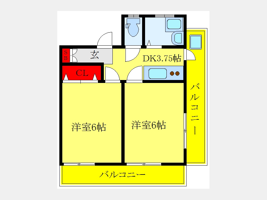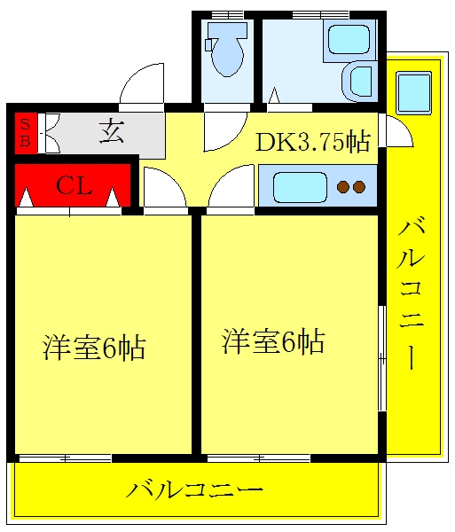 洋室 6 畳 洋室 6 畳 K 3.7 畳 |