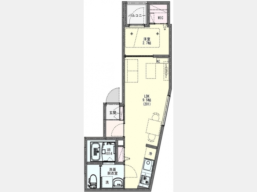 洋室 2.7 畳 LDK 9.5 畳 |