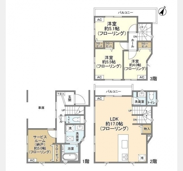 | 間取り | 3SLDK | 階建 | 1階/3階建 |