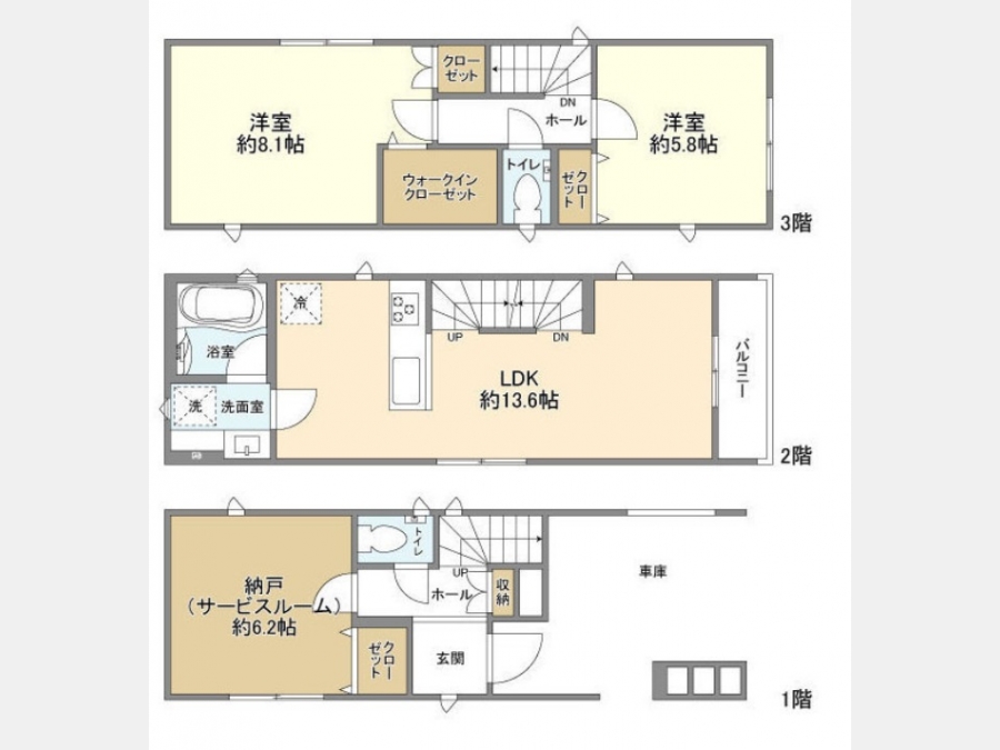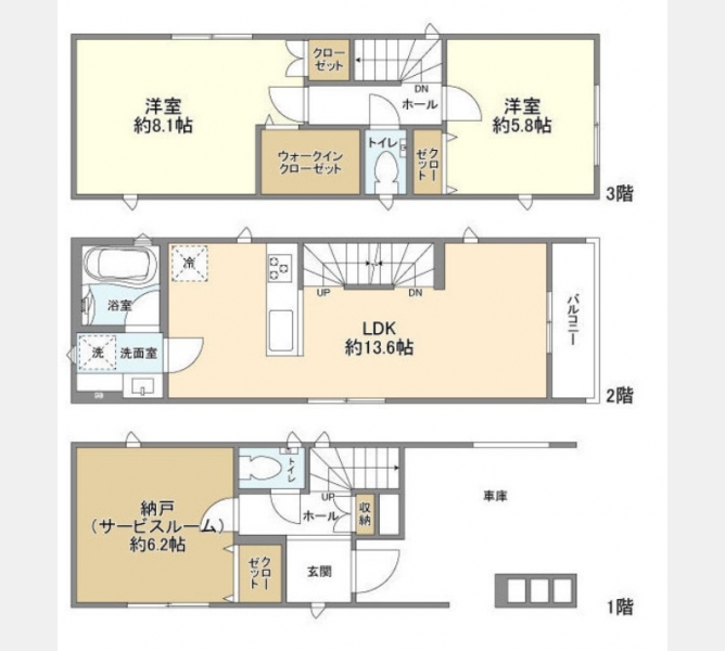 | 間取り | 2SLDK | 階建 | 1階/3階建 |