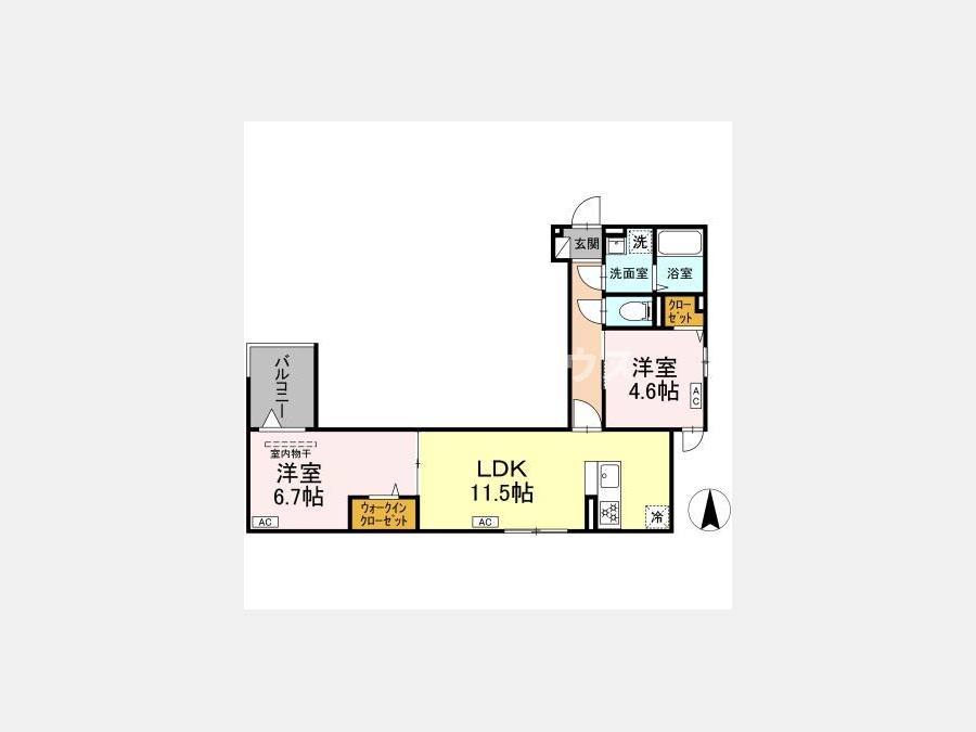 LDK 11.5 畳 洋室 6.7 畳 洋室 4.6 畳 |