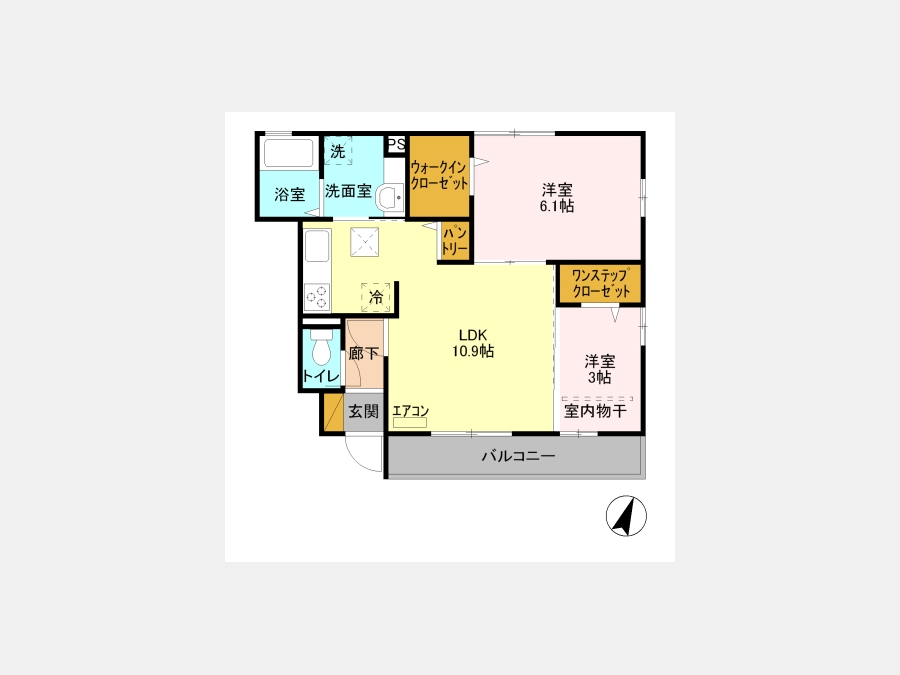 LDK 10.9 畳 洋室 3 畳 洋室 6.1 畳 |
