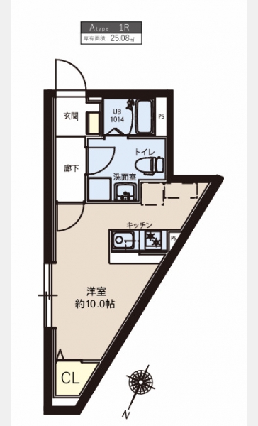 | 敷金/礼金 | なし / なし | 専有面積 | 25.08m² |