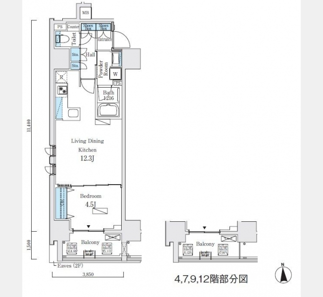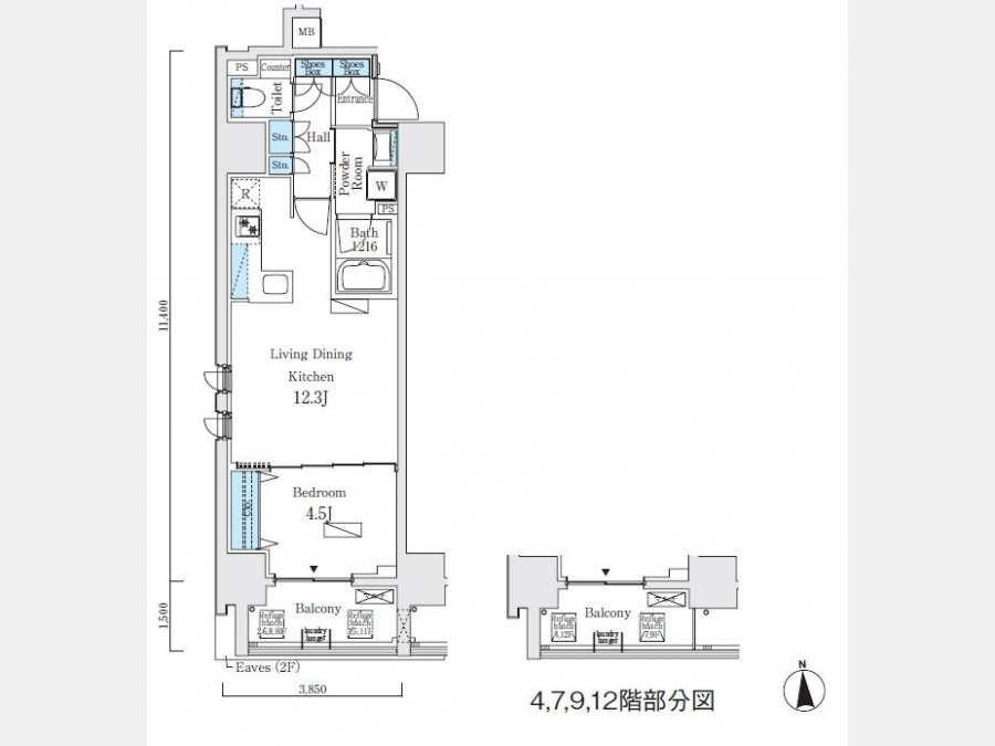 洋室 4.5 畳 LDK 12.3 畳 |