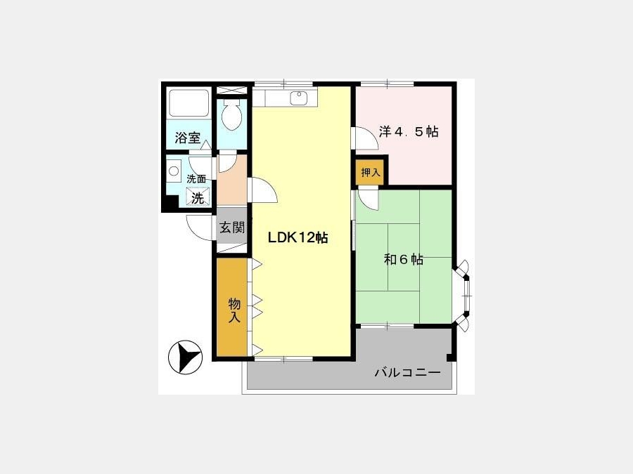 和室 6 畳 洋室 4.5 畳 LDK 12 畳 |