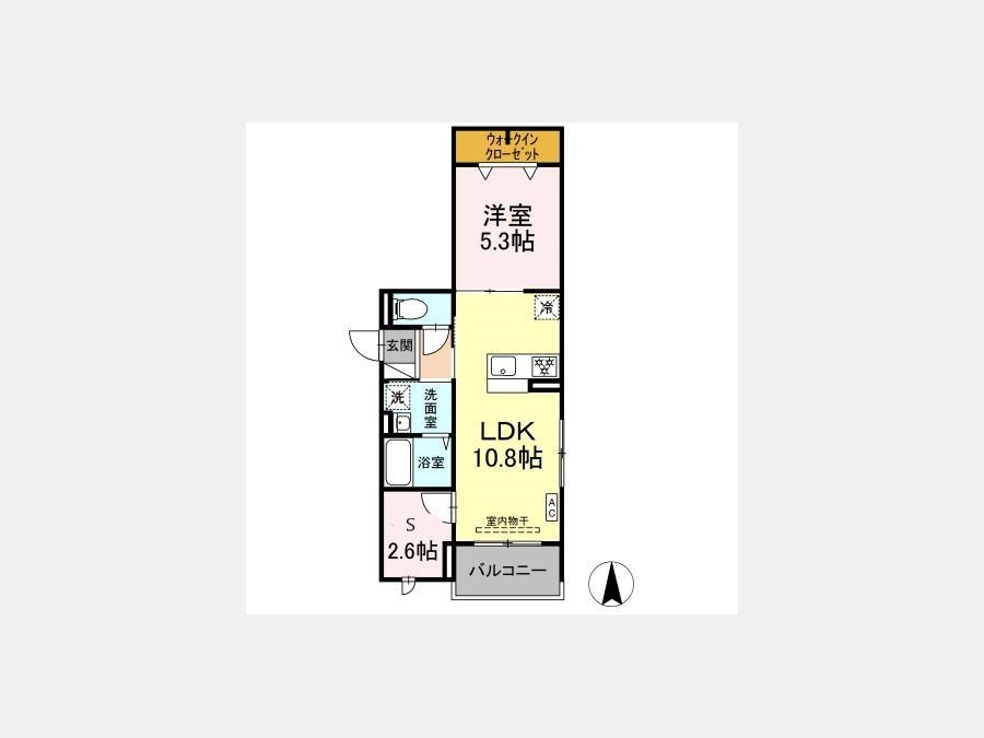 LDK 10.8 畳 洋室 5.3 畳 S 2.6 畳 |
