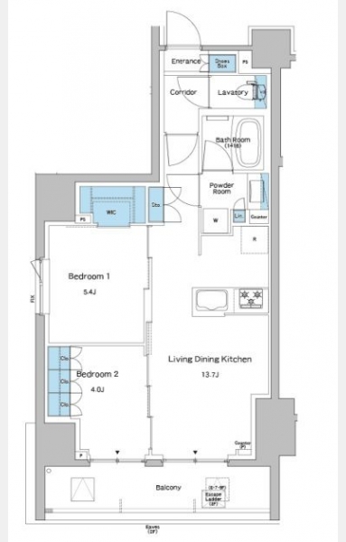 | 間取り | 2LDK | 階建 | 5階/8階建(B1階) |