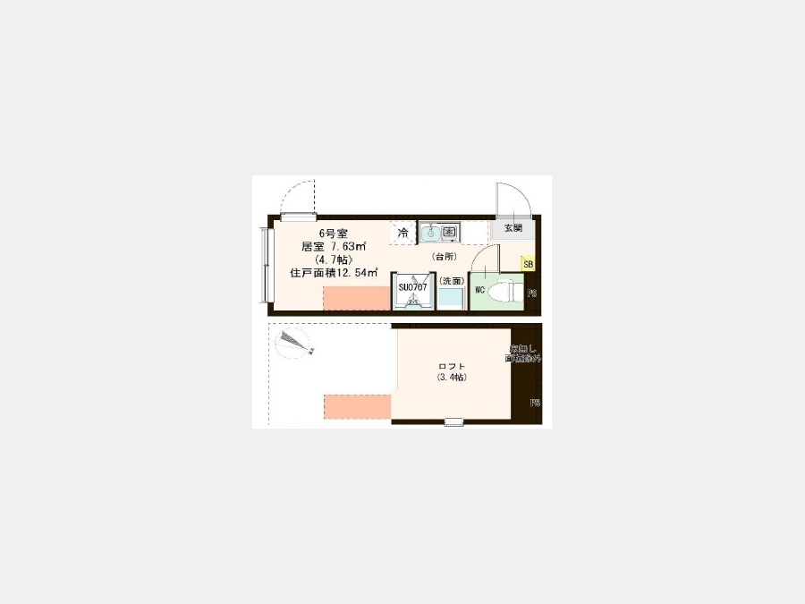 | 専有面積 | 12.54m² | バルコニー面積 | |